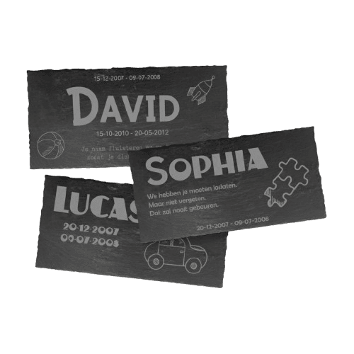 Het verlies van een kind is een diepe en onvervangbare emotie. Een liggende gedenksteen van leisteen voor kinderen helpt om die herinnering een tastbare plek te geven. Rustig van vorm en ingetogen van uitstraling, biedt deze steen een moment van stilstaan, herdenken en verbinding met een dierbare die voor altijd in je hart blijft.